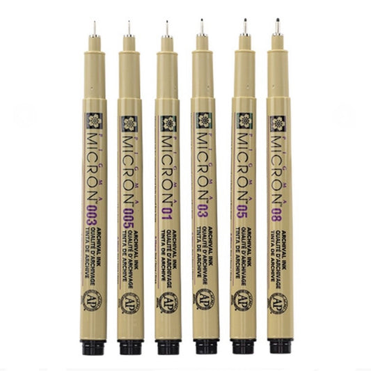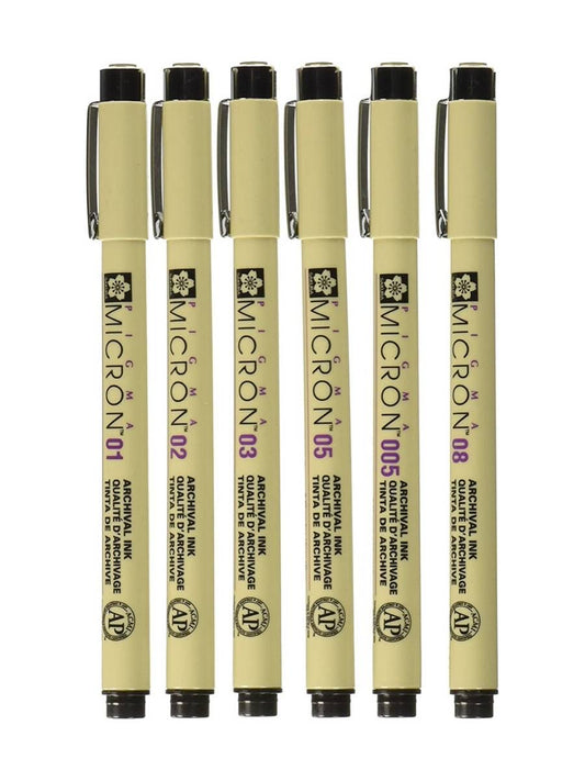 Set 6 tiralineas Pigma Micron tonos Negros, Distintos grosores - Sakura