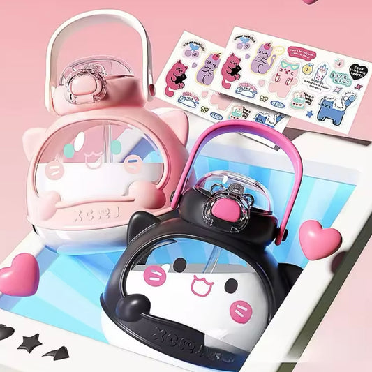 Botella con Bombilla “Gatito” + Lámina de Stickers + Correa. 810ml