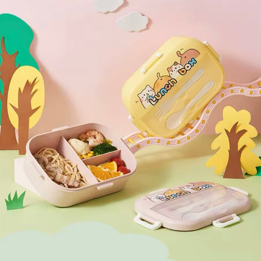 Lunch Box + cubiertos “Gatitos”. 22x15x7cms
