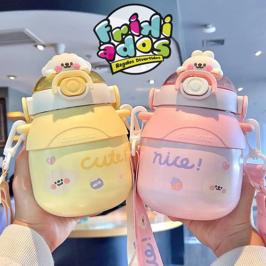 Botella con Bombilla + Correa “Animalitos”. 500ml