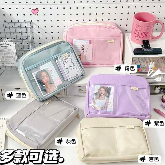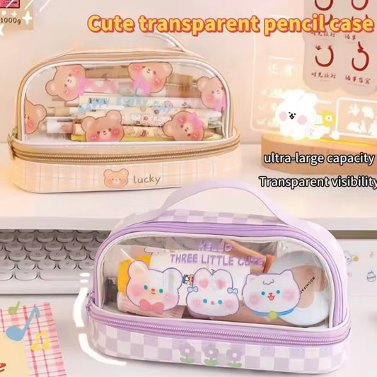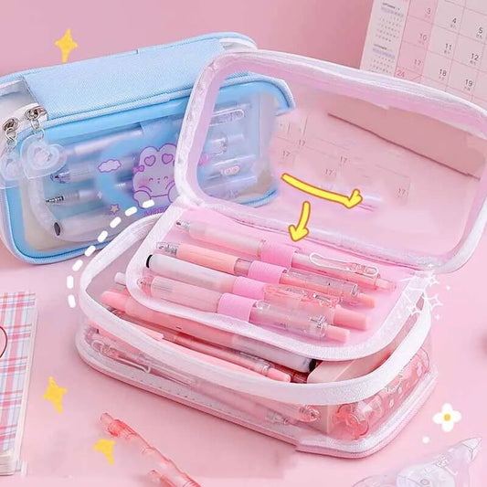 Estuche Transparente Doble Bolsillo, 23x15x10cms