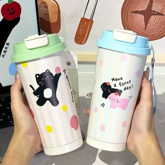 Termo Boquilla y Bombilla “Gatitos”. 550ml