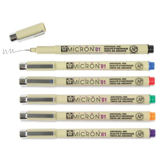 Set 6 Tiralíneas Pigma Micrón 0.1 Mándala 6 Colores. Marca Sakura