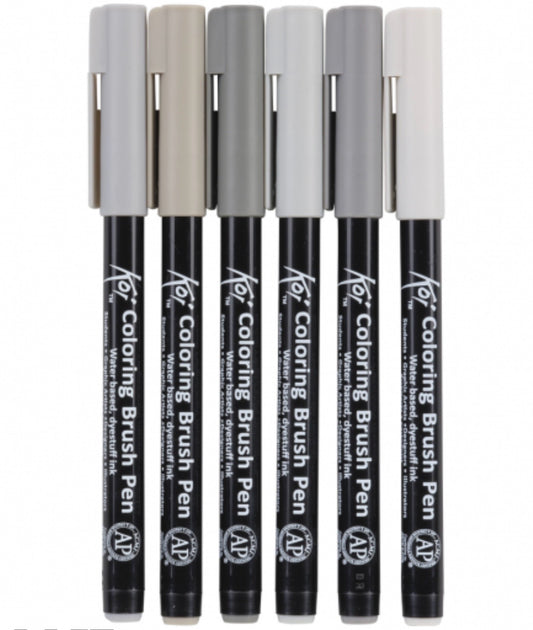 Set 6 Plumones Acuarelables Sakura Koi Brush Tonos Grises