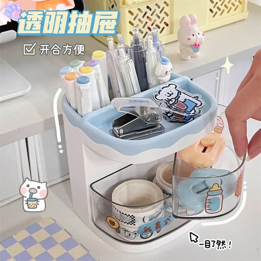 Organizador de Escritorio + Lámina de Stickers “Sanrio”. 12x11x11Cms