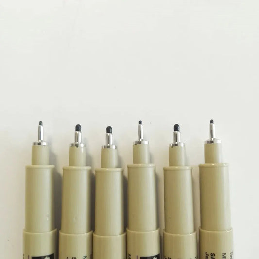 Set 6 tiralineas Pigma Micron tonos Negros, Distintos grosores - Sakura