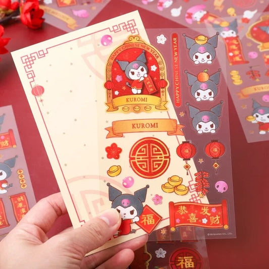 Set 4 Láminas de Stickers “Festival Chino Sanrio”. 16x10Cms