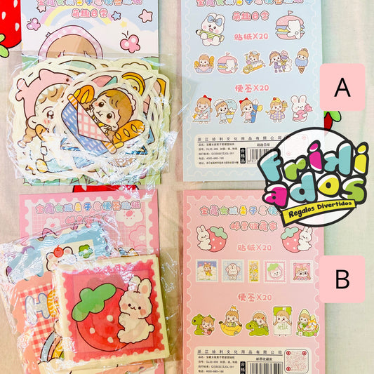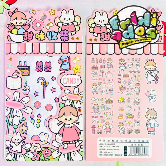 Set 4 Láminas de Stickers Kawaii, 18x11cms