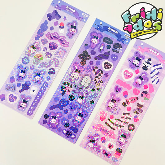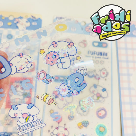 Lámina de Stickers “Fufubai Holográficos”. 20x9cms