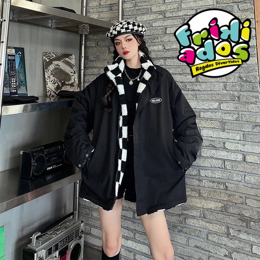 Chaqueta Reversible “Cuadros”. Por 2 Lado Felpuda y por el otro Cuerina.