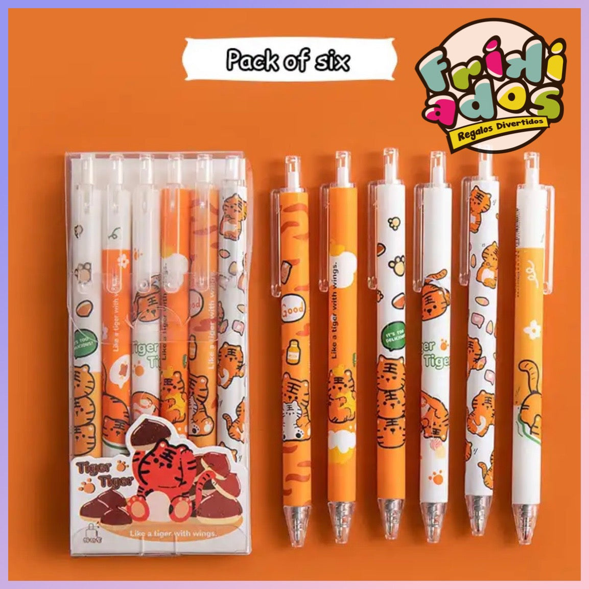 6 Bolígrafos tinta Gel “Tigres”, color Negro, 0,5mm