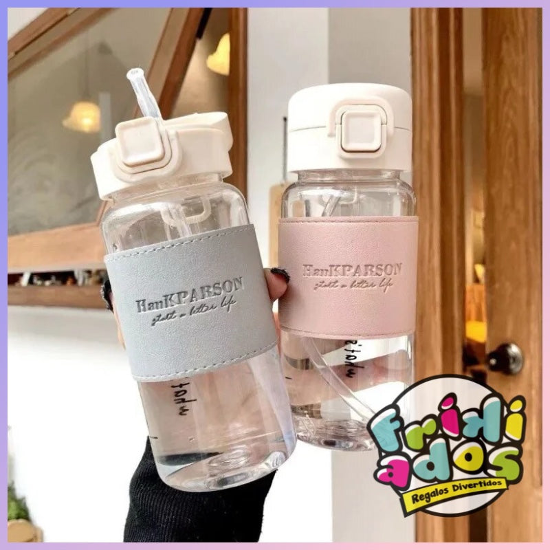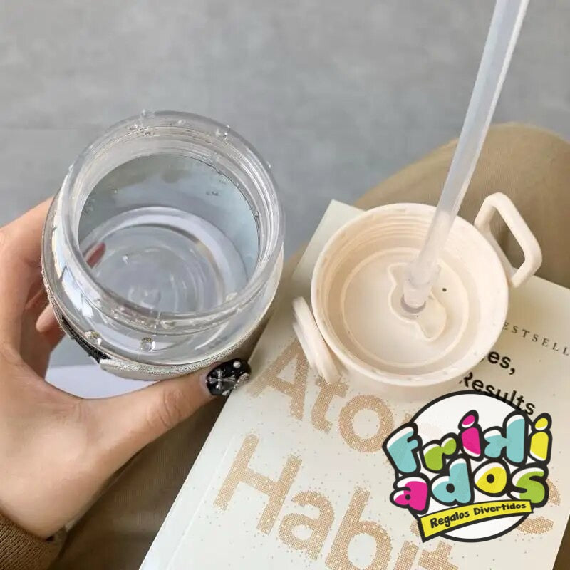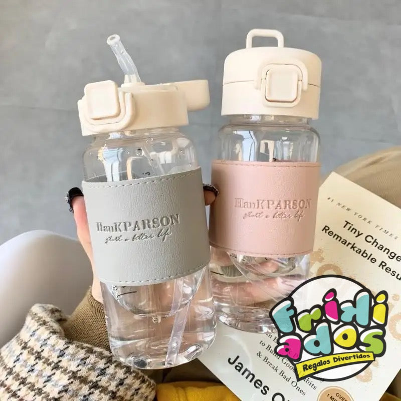Botella de Vidrio con Bombilla. 400ml