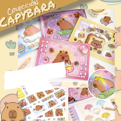 Croquera + Lámina de Stickers “Capybara”. 29x21Cms
