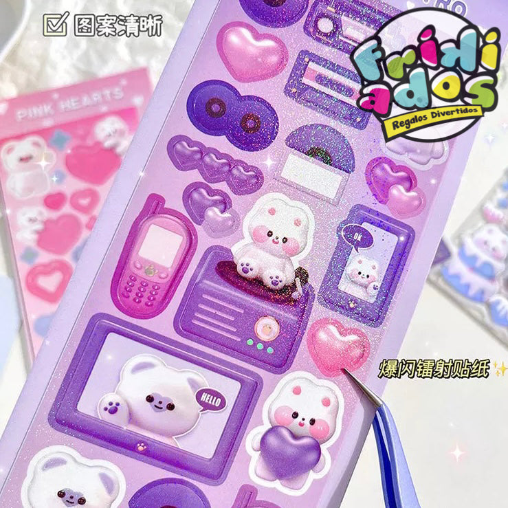 Lámina de Stickers con Brillitos, 22x8cms