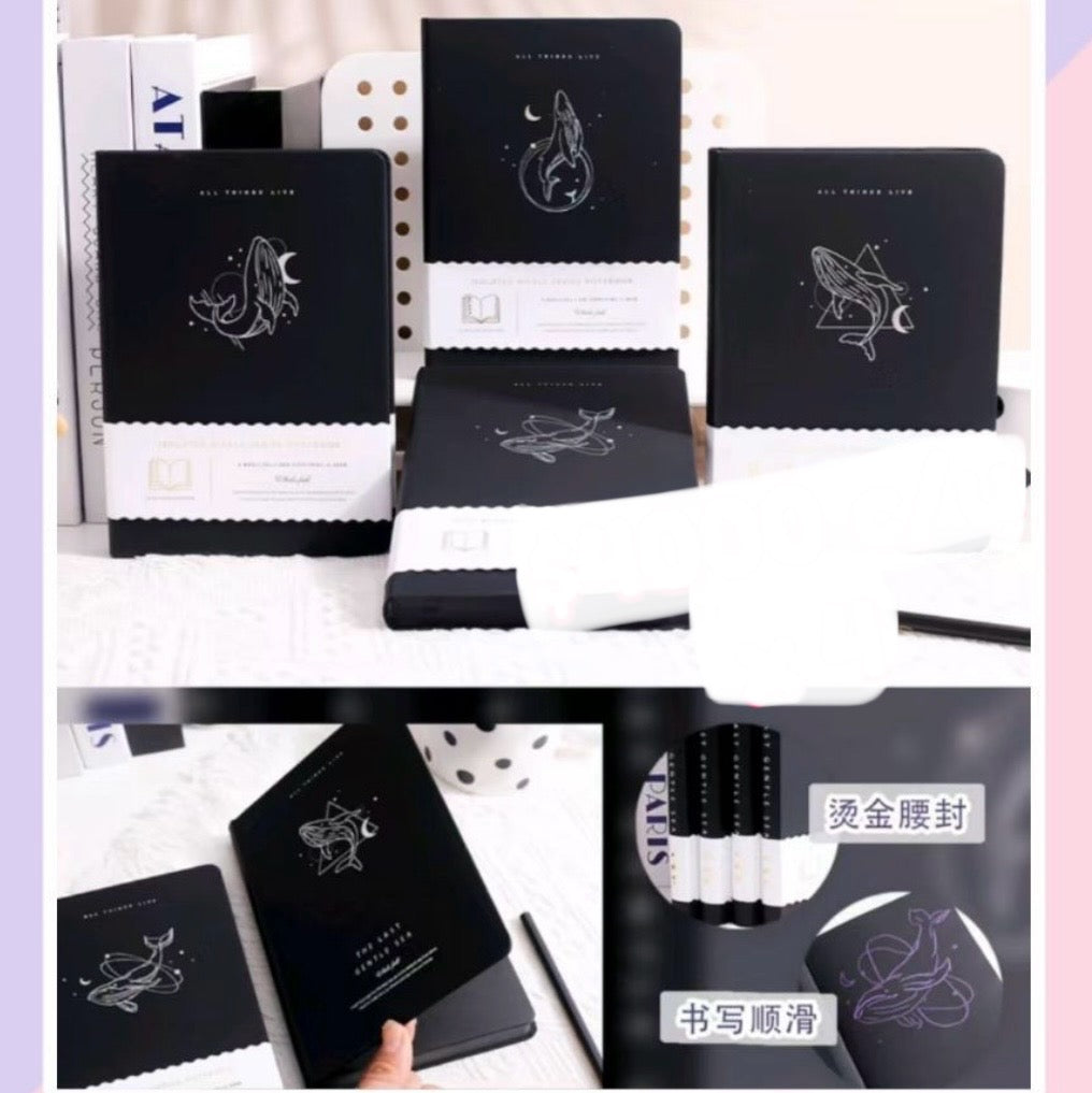 Libreta Hojas negras “Ballenas”. 96 Hojas 19x13cms