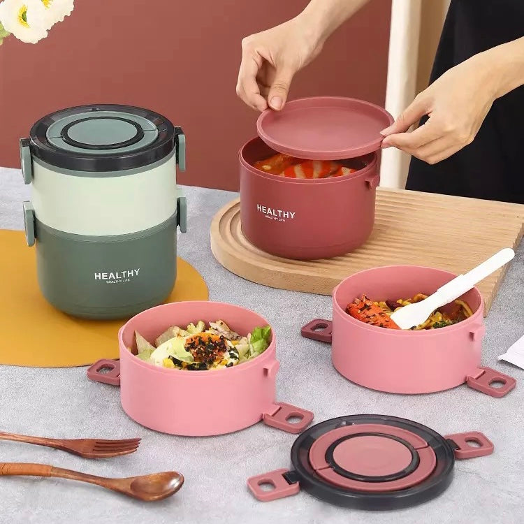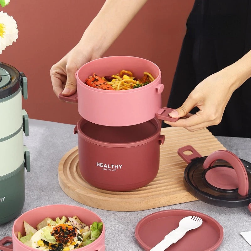 Lunch Box + Tenedor + Lámina de Stickers + 4 Stickers 3D. 1 y 2 Niveles. Apto para microondas