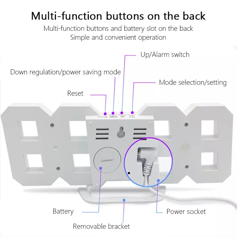 Hermoso Reloj de Escritorio, Funciona con enchufe Usb, debe estar enchufado para que funcione y su pila es para conservar la memoria de las alarmas, tiene sensor de temperatura y sus medidas son 23x9cms.