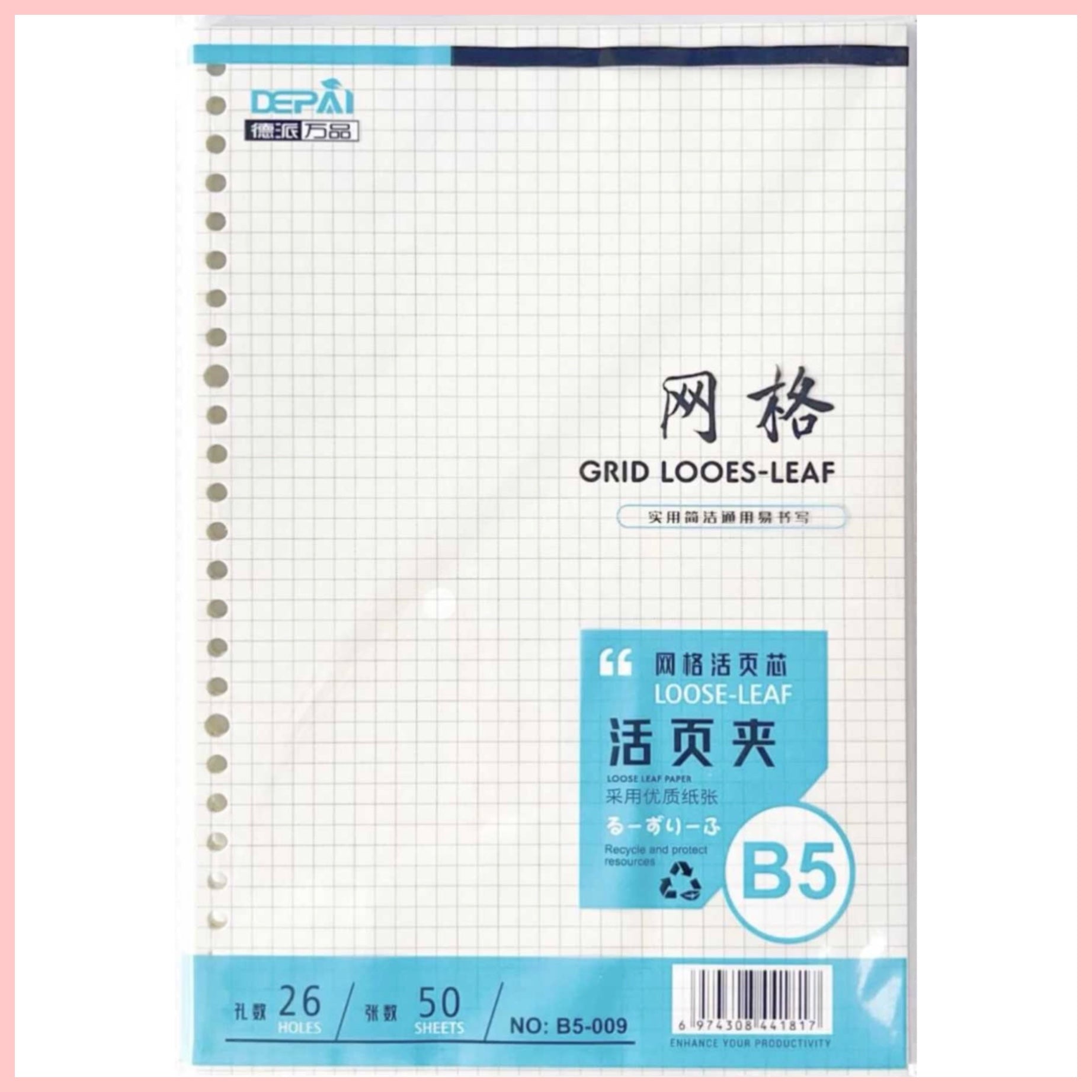 Repuesto 50 Hojas para Binder “Cuadros”. Tamaño B5