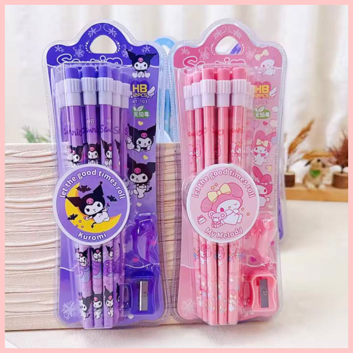 Set 12 Lápices Mina + Sacapunta + Empuñadura “Sanrio”.