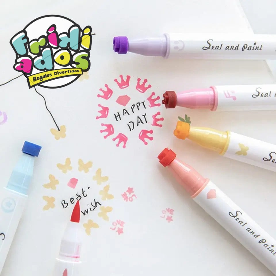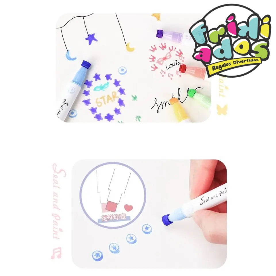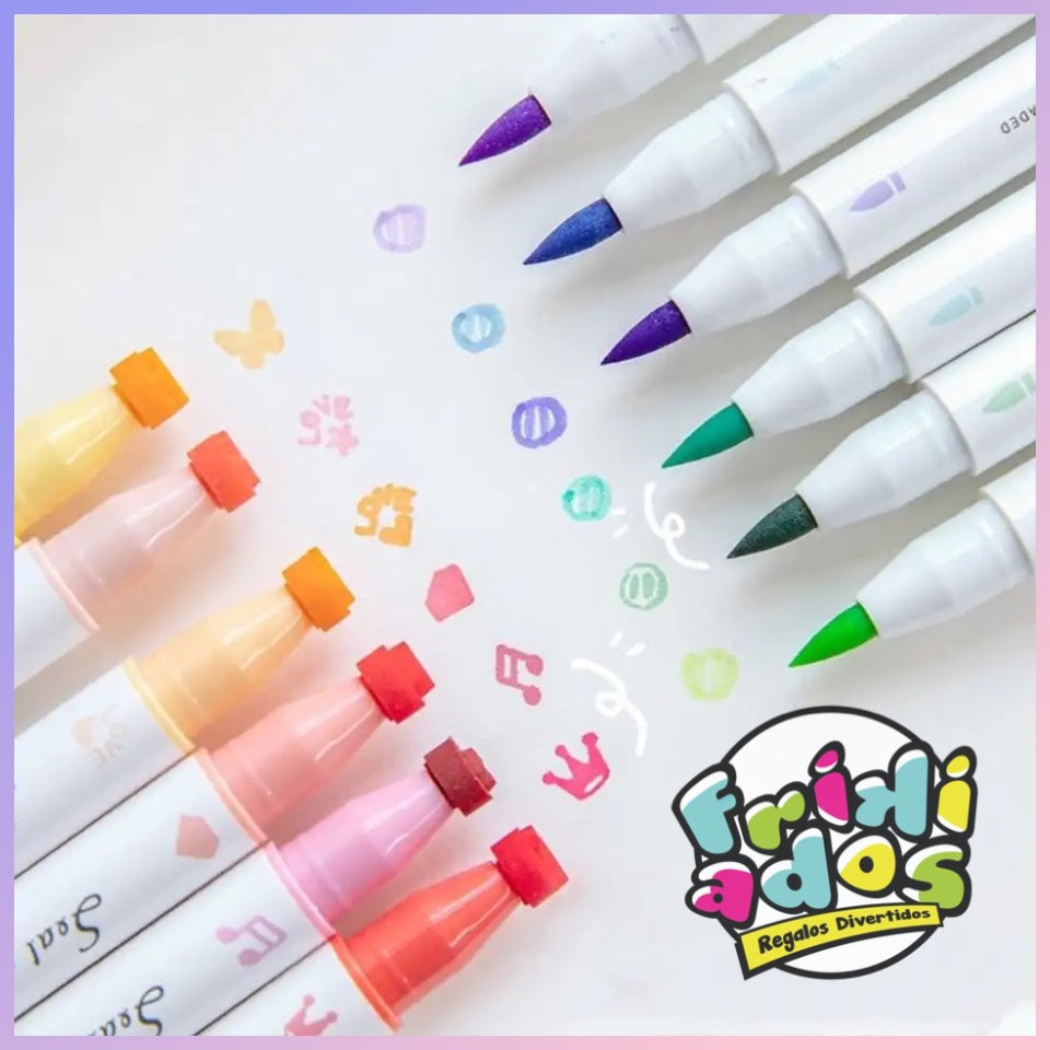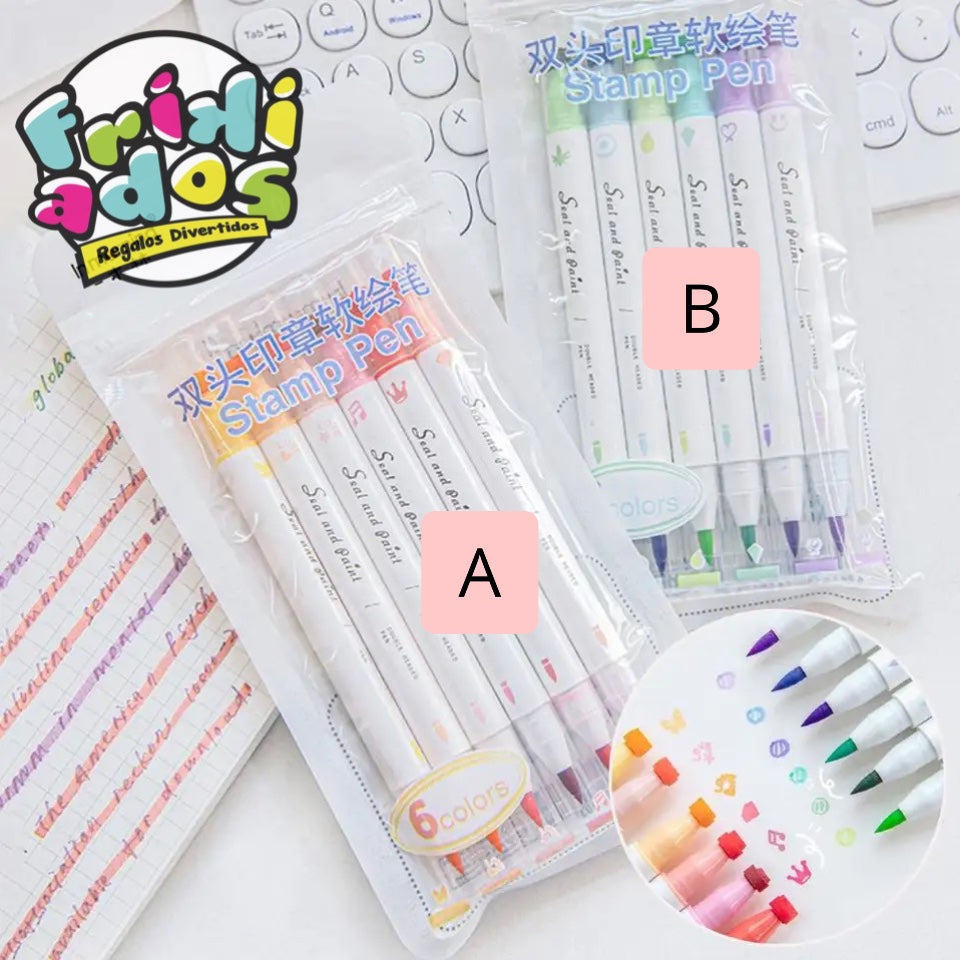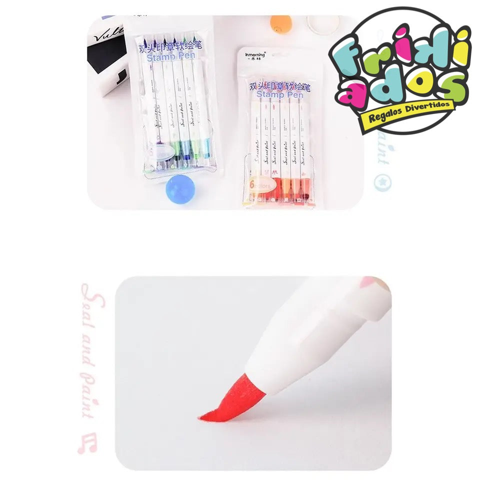 Set 6 Marcadores Dobles (Timbre y Punta Pincel).