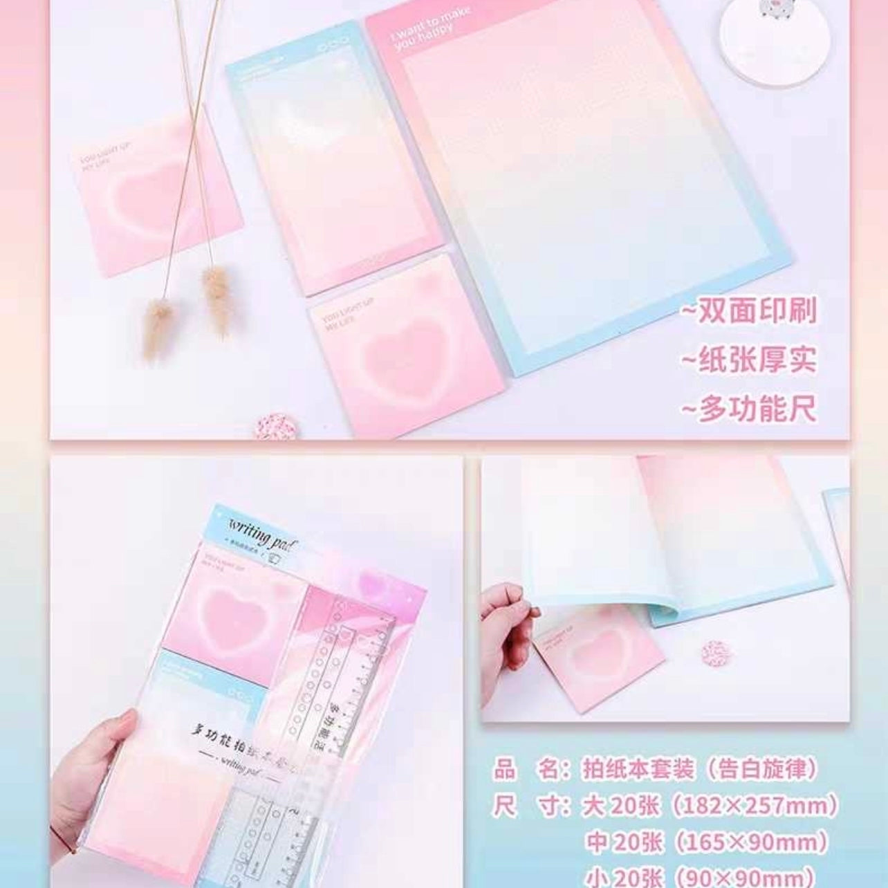 🌸Set Papelería: 20U 26x19Cms, 20U 17x9Cms, 20U 9x9Cms + Regla.